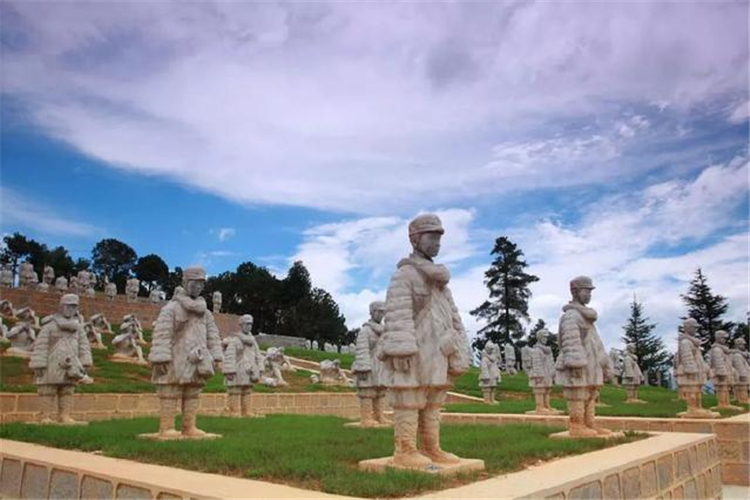 松山戰(zhàn)役遺址位于龍陵縣城東39公里的怒江西岸臘勐鄉(xiāng)的大松山頂一帶,屬橫斷山的高黎貢山山脈,在海拔2200米的主峰頂上,北,東,南三面可俯瞰山高谷深的怒江大峽谷,是易守難攻的戰(zhàn)略要地。二戰(zhàn)時(shí)期,中國(guó)南方最大的抗日戰(zhàn)爭(zhēng)戰(zhàn)役——松山戰(zhàn)役在這里進(jìn)行。 2013年9月9日正值世界反法西斯戰(zhàn)爭(zhēng)68周年之日《中國(guó)遠(yuǎn)征軍雕塑群》在云南龍陵縣松山戰(zhàn)役舊址落成。由雕塑家李春華創(chuàng)作并捐贈(zèng)的402座單體雕塑按真人尺度1:1?2的比例塑造。分為將軍,夏裝士兵,娃娃兵,跪射兵,炮兵等12個(gè)方陣。