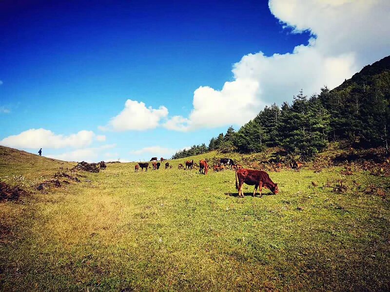 雷達站草場距離騰沖城約15公里,藍天、白云、草場、池塘構(gòu)成了一顆高山之巔的明珠。徒步路線一般從東山腳下的玉璧山莊出發(fā),沿著玉璧古道這條由石頭筑成的道路一路向上,聽風看景,穿過郁郁蔥蔥的森林,和隊員間相互扶持不拋下任何一個人,最終到達大草場。