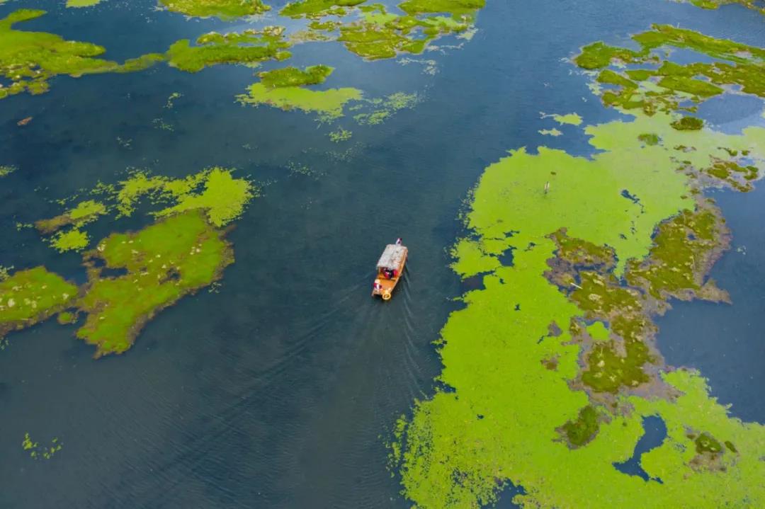 這里水草密密麻麻,根交錯(cuò)在一起,日復(fù)一日,年復(fù)一年,舊草腐爛,新的長(zhǎng)在腐爛的草根上,然后又腐爛,然后又長(zhǎng)出新的,最后形成整片整片的草甸各自浮在水面上,宛如一個(gè)一個(gè)的小草島。