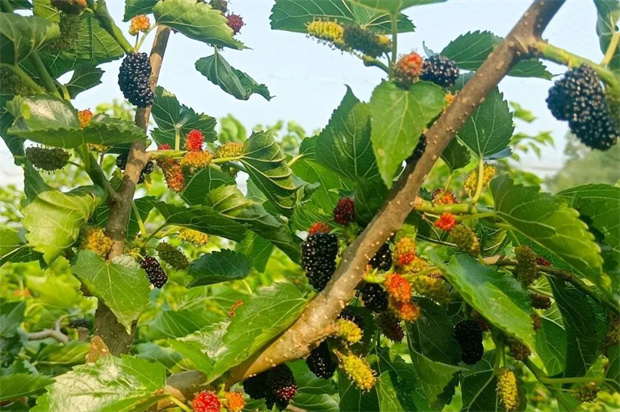 黑紫色的桑果掛滿枝頭