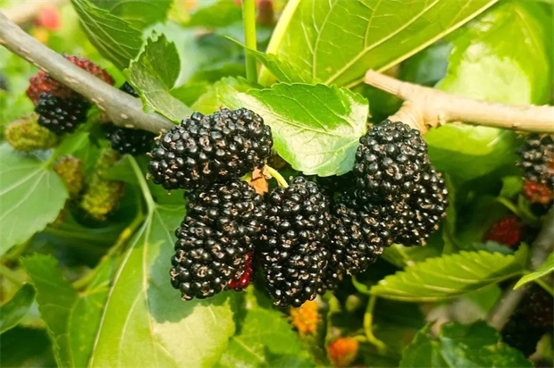選擇果實(shí):應(yīng)挑選紫黑色的成熟桑葚采摘,紅色、黃色的還未成熟,長(zhǎng)毛的則不要采摘。