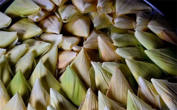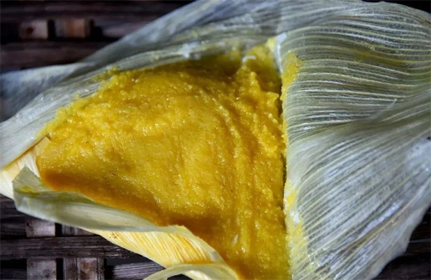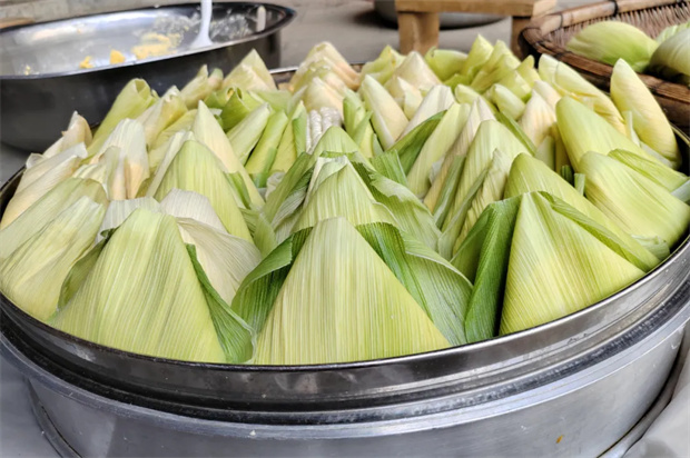 舀一勺倒在玉米葉上,指尖輕輕一折