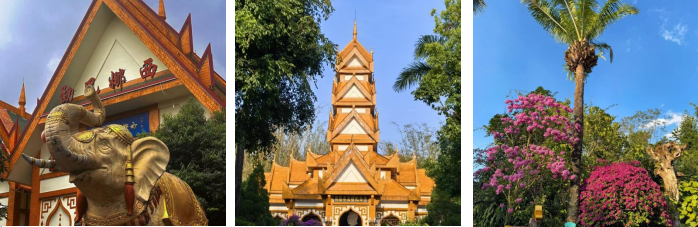 濃郁的南傳佛教氛圍。登臨塔周,您可以俯瞰整個芒市壩子的絕美風(fēng)光,將城市與田園盡收眼底,心境也隨之豁然開朗。尤其在日落