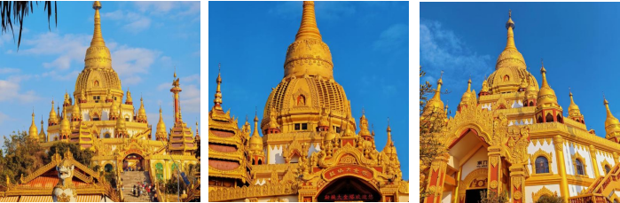德宏州令人矚目的神圣地標(biāo)。整座塔在藍(lán)天白云的映襯下,通體散發(fā)著莊嚴(yán)而溫暖的金色光芒。它高聳入云,氣勢恢宏,是當(dāng)今中國