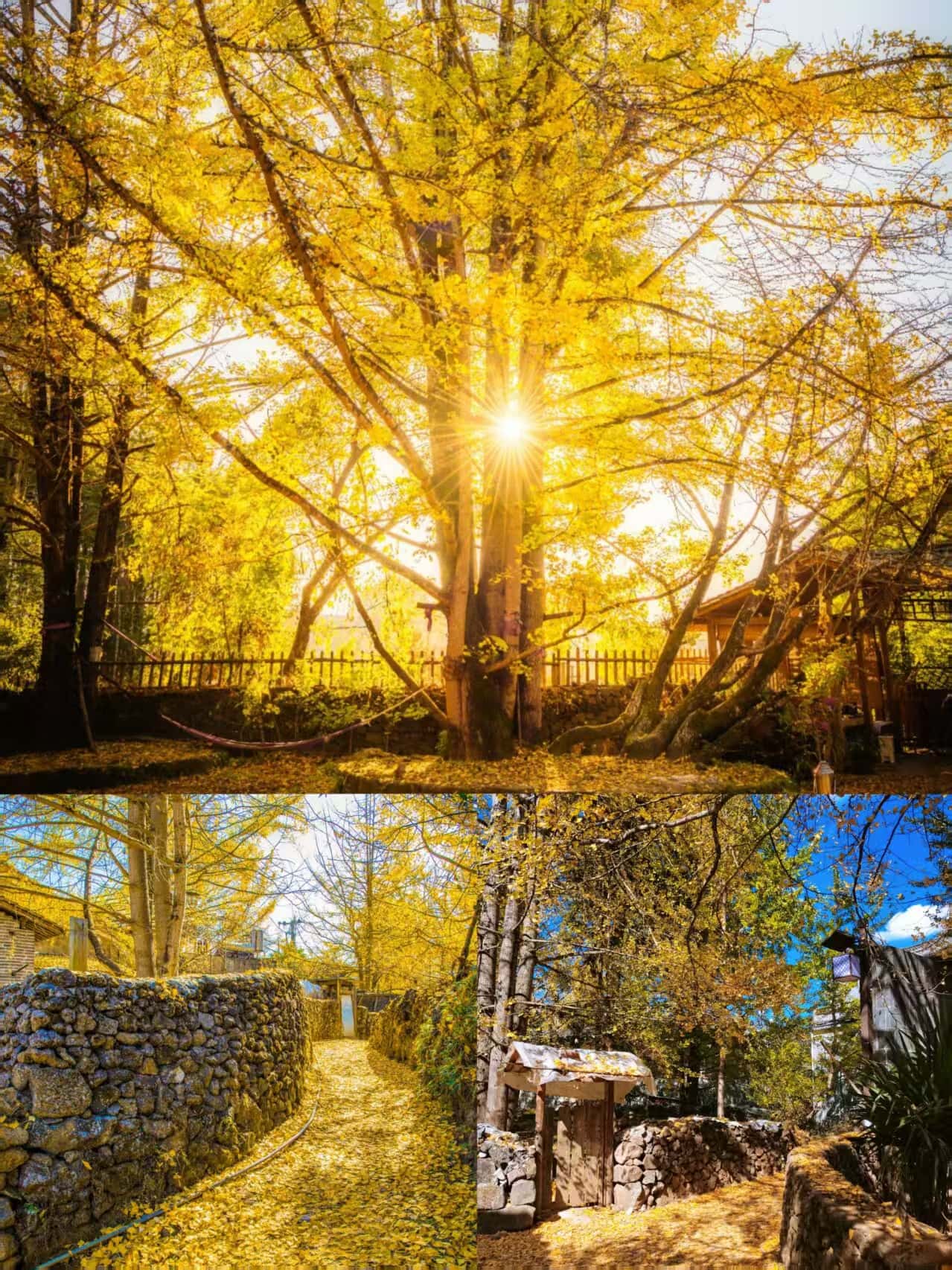 若時(shí)間充裕,可順路探訪「三疊水瀑布」(距村1.1公里),瀑布與銀杏同框別有韻味。帶足256G內(nèi)存卡,這里的每一幀都是壁紙級(jí)大片!