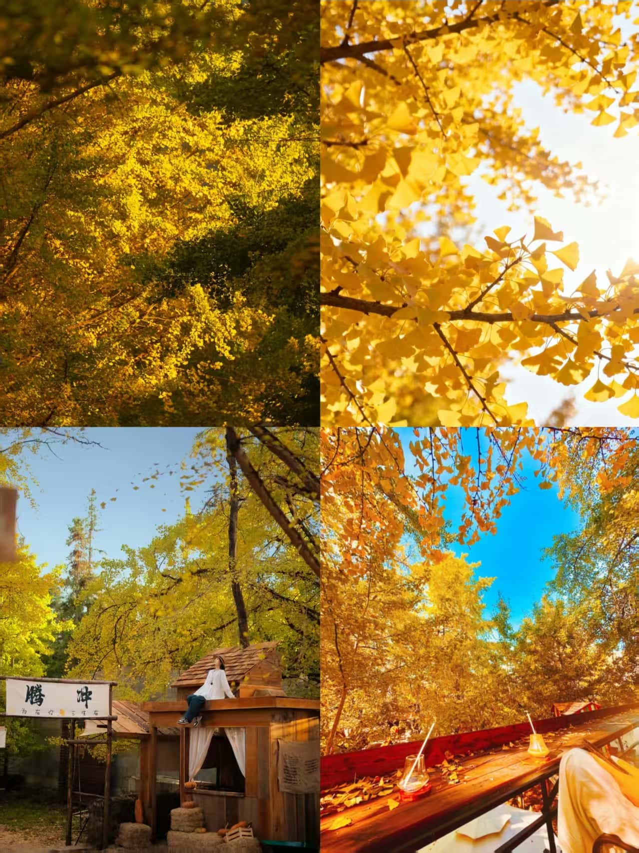 直奔銀杏王廣場(chǎng),千年古樹在晨霧中如金色巨傘(穿淺色長(zhǎng)裙+草編包,側(cè)逆光拍攝發(fā)絲光)。