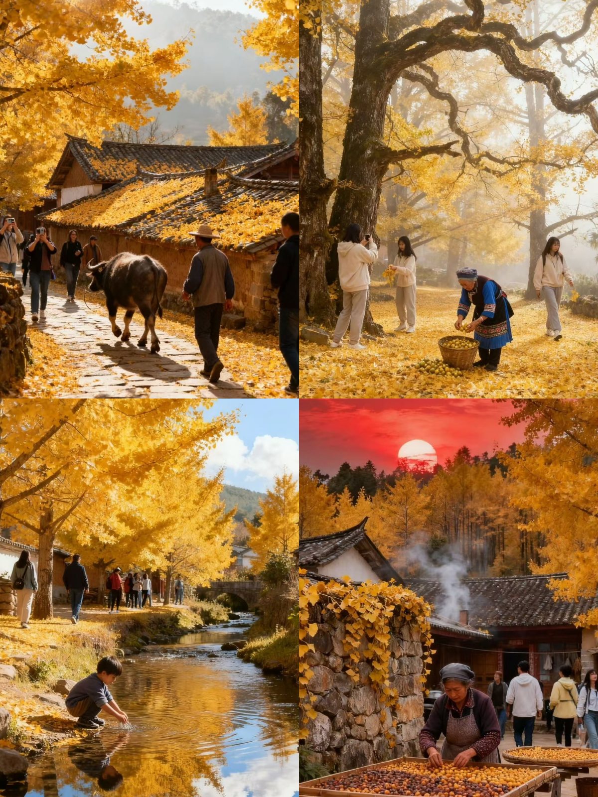 每年 11 月中旬 - 12 月初是最佳觀賞期!整個村子被 3000 + 棵古銀杏樹包圍,地上鋪著 10cm 厚的 “黃金地毯”,隨手拍都是電影感畫面,不用濾鏡也能美到窒息~ 相比于其他網(wǎng)紅地,這里商業(yè)化不重,還能體驗原生態(tài)村落生活!