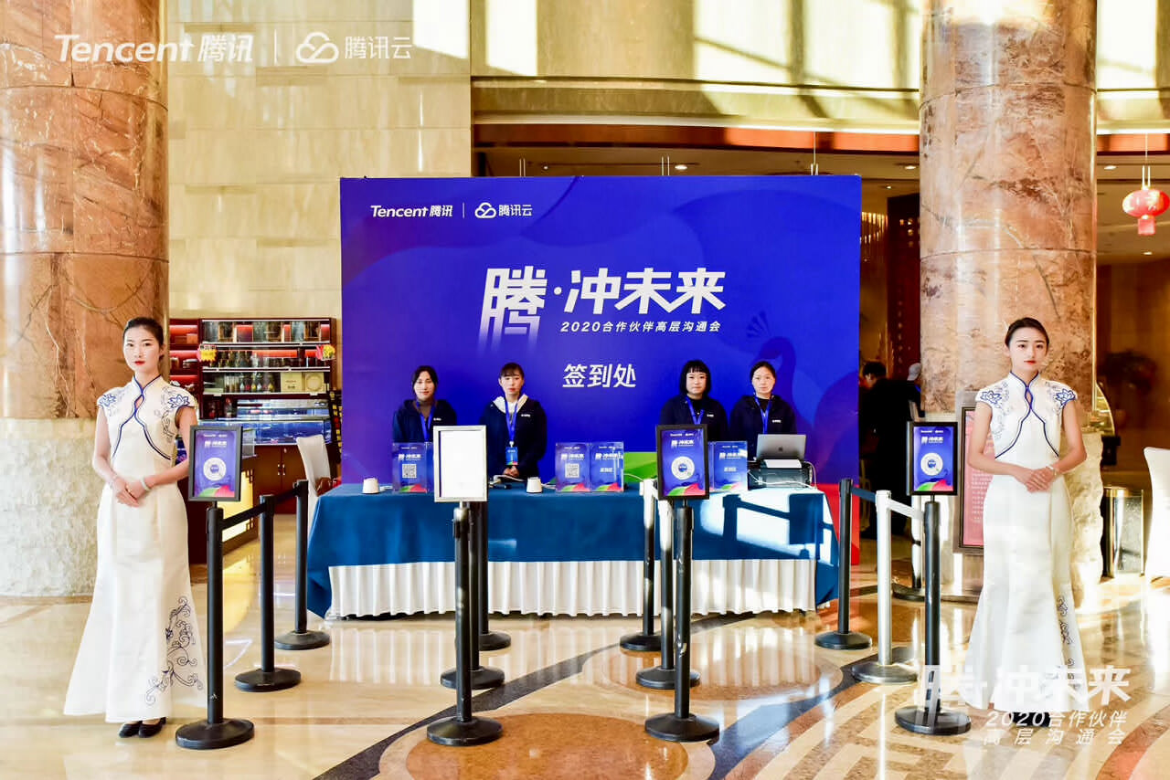 騰訊云在云南騰沖世紀金源大飯店舉辦2019年合作伙伴高層溝通會及答謝晚宴!天行提供會議會展、獎勵旅游、市場活動管理及包括AV搭建、物料制作、活動場地、演藝、拓展、勞務(wù)人員等專項資源管理在內(nèi)的專業(yè)會展服務(wù)。