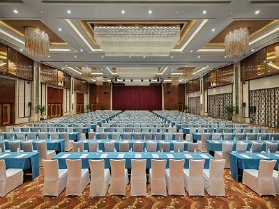 酒店擁有高7米,面積1200平方米的無(wú)柱式千人宴會(huì)廳及不同規(guī)格會(huì)議室19間,均配有高端專業(yè)影音設(shè)備和無(wú)線同聲傳譯系統(tǒng)。酒店為會(huì)議提供以下服務(wù):高清LED顯示屏;活動(dòng)舞臺(tái)、白板、各式麥克風(fēng);多媒體投影儀、屏幕;演講臺(tái)、實(shí)物投影儀、攝像機(jī)、電視機(jī); 寬帶上網(wǎng)、激光筆、同聲傳譯; 筆記本電腦、電視電話會(huì)議;舞臺(tái)燈光、專業(yè)音響等,能滿足各種會(huì)議需求。