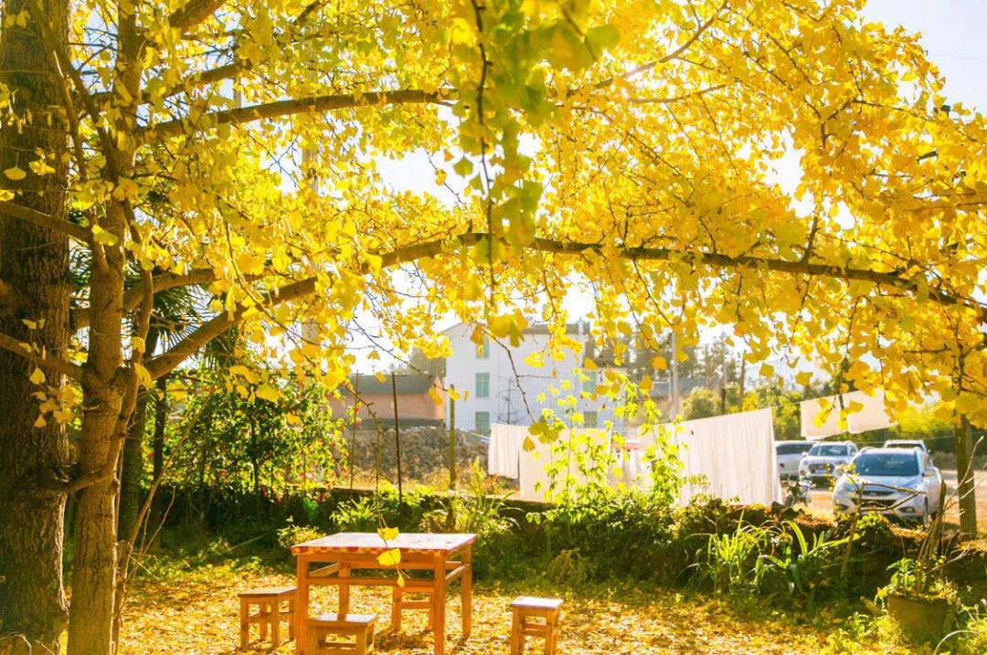 村內(nèi)巷道縱橫交錯,古樸的房屋與大片的銀杏林交相輝映,小巷里、墻頭上、瓦房上、水溝邊,眼光所及之地無不是一片金黃,但這樣的美景一年只有20天,因為銀杏期集中在11月底到12月中旬,錯過了就要又等一年!