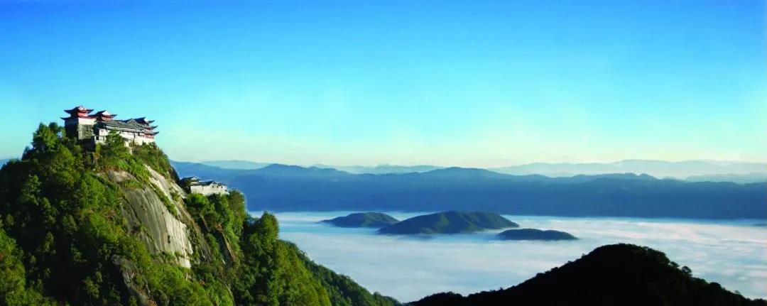 云峰山道觀是建在懸崖峭壁上的神奇道觀,山頂?shù)脑评锏鄢恰P煜伎兔枋鲈品迳剑骸八铺A之蒼龍脊,此乃靈異之山”。