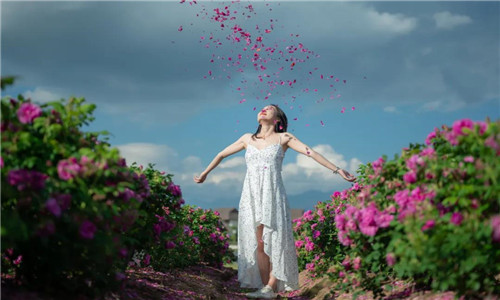 伴著迷人的花香,走進(jìn)玫瑰花海,耳畔是蜜蜂的嗡嗡聲,粉嫩的玫瑰花瓣散落在地上,泥土也芳香了起來。