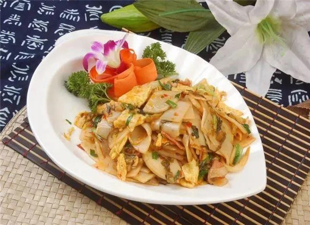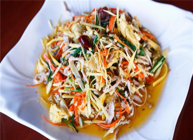 雖是落難皇帝,騰人亦以禮相待。當(dāng)時永歷帝饑腸轆轆,急需進食,廚師來不及將餌卷切成絲,只三刀兩剁,加佐料炒熟供永歷帝進膳。這位落難皇帝本系深宮弱質(zhì),又經(jīng)長途奔波,今得進此食,比山珍海味還可口,便問:“此食何名?如此美味,真乃救吾駕也?!敝魅苏Z塞之余,突然醒悟,奏曰:“此食原本無名,今日得皇上以救駕稱之,幸甚!”