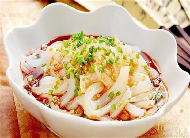 別看它就一小塊薄薄的面皮,但是放的調(diào)料可多了,醬(專門調(diào)制的),花椒油、芝麻油、韭菜綠豆芽和黃瓜絲(用開水稍微煮一下)、炒花生米、燒肉(可放可不放),然后把這些調(diào)料和菜都裹在里面就可以吃了!也可以不用裹,把卷粉切成片或切成絲放上調(diào)料和醋辦一下就可以了。