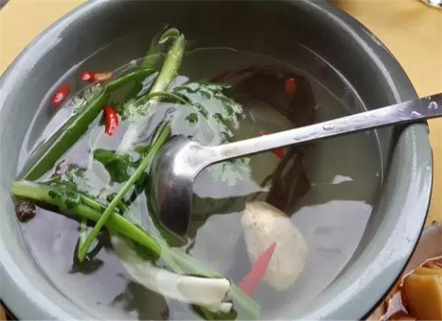 騰沖的干腌菜酸味可口。干腌菜加糊辣椒、芫荽及其它佐料,開水沖泡,制成蘸水碗,適宜吃各種綠菜及素煮的菜蔬;開水沖泡干腌菜,加入鹽巴、辣椒及搗姜塊,再放上三兩截大蔥,置海碗內(nèi),便是著名的“青龍過海湯”,真令人胃口大開……