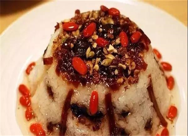 這個八寶飯?zhí)鹋纯煽?,就連不愛吃甜食的人都贊不絕口。而咸八寶飯,則是加入臘肉等食材,不放豆沙蜜餞等,只放鹽巴和草果等香料,吃起來軟糯、口味香而不膩。