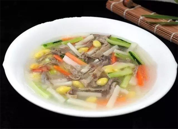 這道菜有白果的清香、豬肚的爽口,湯色奶白,味道鮮美,具有健脾開胃、滋陰補腎、去濕消腫的作用。而且補而不燥